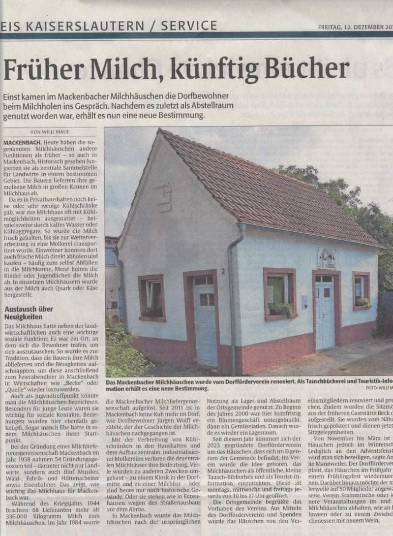 Das Milchhäuschen in Mackenbach von Jürgen Wolff Früher Milch, künftig Bücher Rheinpfalz, 12.12.25 Home